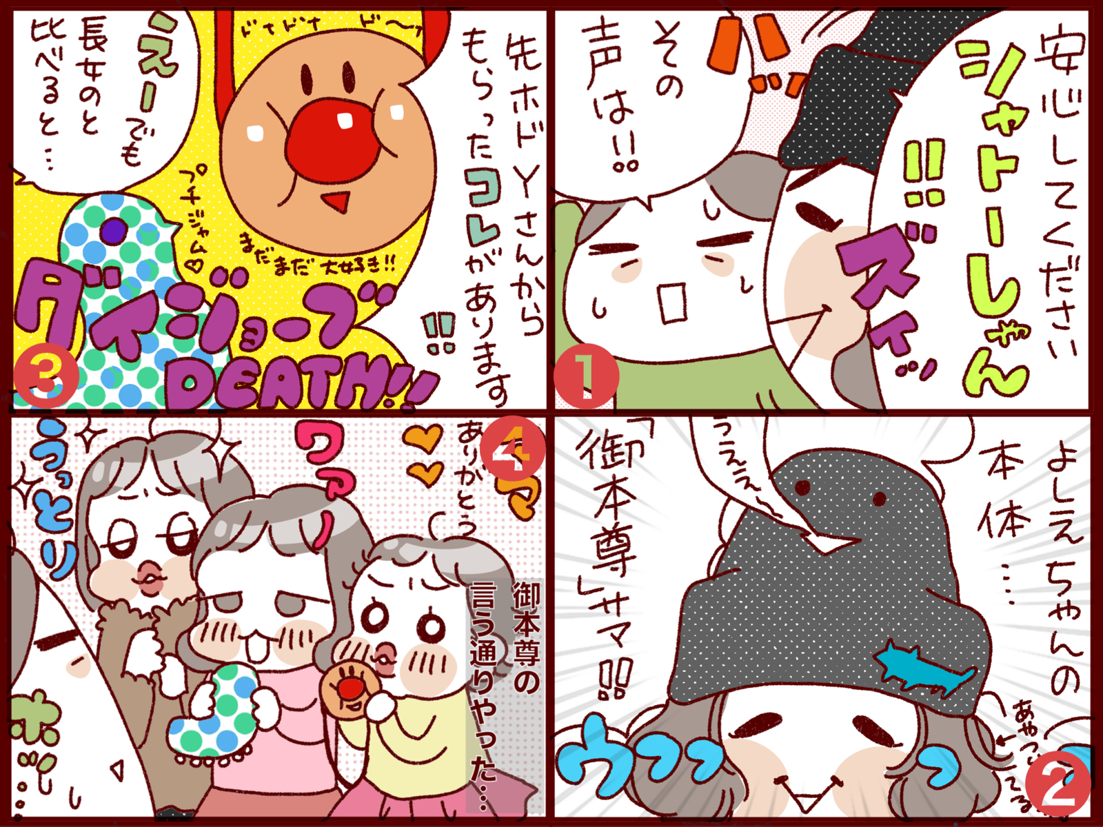 その後、いろいろ考えて三女から順番にアンパンマン→プチジャム→上着の順に渡したら三姉妹とも喜んでくれました…。