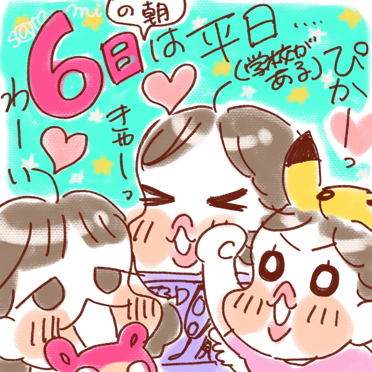 普通に平日だったので学校の支度をさせるのがいつもより大変だったもようです。