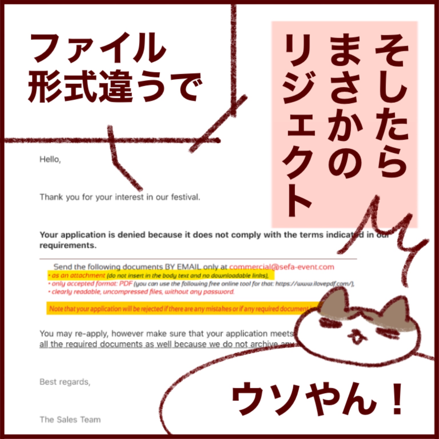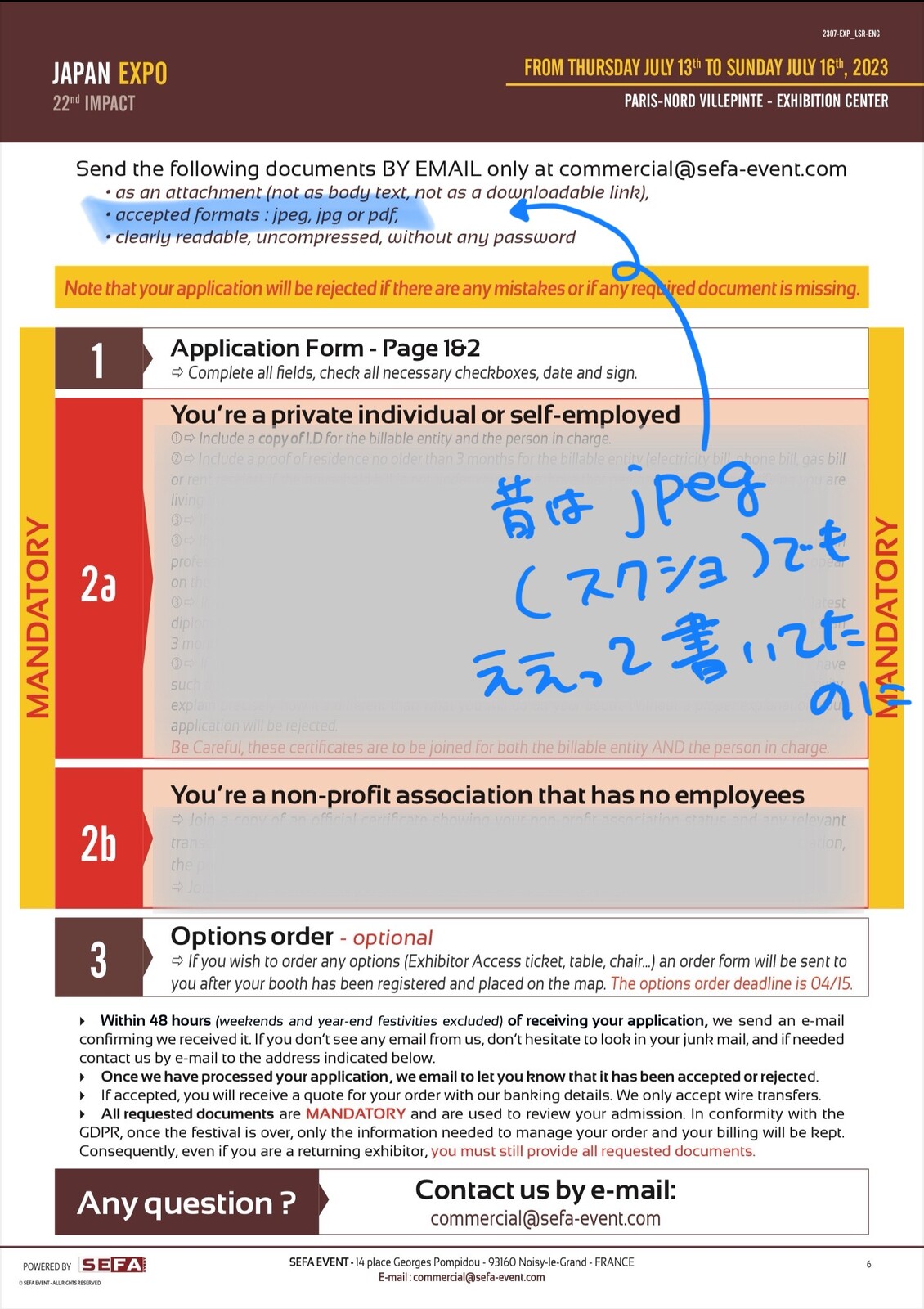 PDFで出来ないこともないねんけど、なんでJPEGがダメなんかよくわからんくて、次に書類上のリジェクトがあった場合は参加を断念しようかと思うレベル…。