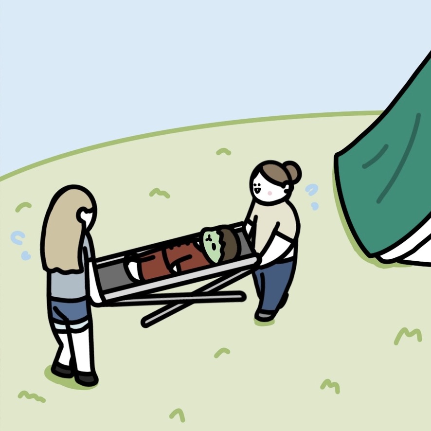 今日は私と次女のテントが一人、三女のテントは四人病気だったから違う建物で寝てました。今日は暑かったです。朝は何とかなマリオゲームをして、みんなが死体のように運ばれている姿を真似してホラー映画のトレーラーを作ろうとしました。お昼の後は近くの川で遊びました。